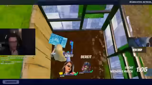 01:32:17Es wird überlegt, ob Knacks für ein Spiel eingeladen werden soll, aber verworfen. Stattdessen wird beschlossen, Duos zu testen. Es wird erwähnt, dass in etwa 50 Minuten wegen FNCS aufgebrochen werden muss, aber noch Zeit für zwei Spiele bleibt. Es wird die Vorliebe für den Reload-Modus und VUG geäußert. Ein kurzer Hinweis auf das fehlende Ranking im aktuellen Spiel wird gegeben, was zu einer schnellen Spielsuche führte. Die Zuschauer werden auf die FNCS-Übertragung am Abend hingewiesen. Es wird kurz über die Anzahl der Zimmer in der Wohnung gesprochen und der Wunsch nach einer größeren Wohnung mit separatem Schlaf- und Streaming-Raum geäußert. Es folgt ein Gespräch mit einem anderen Spieler über ein Speedrun-Video und die aktuelle Spielsituation.