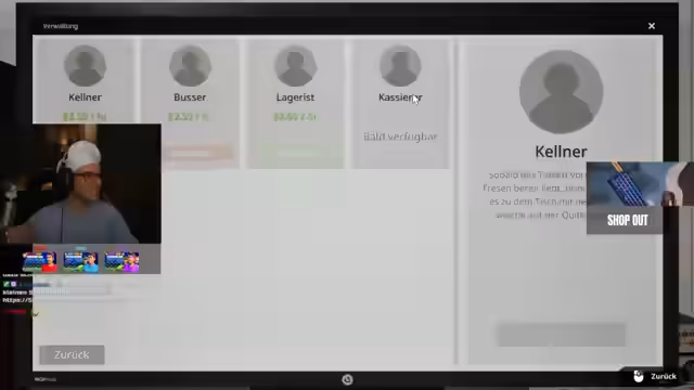 00:48:18Der Streamer und sein Kollege erleben einen weiteren Tag im Restaurant, wobei der Kollege sich mit TikTok in der Arbeitszeit die Zeit vertreibt. Es wird überlegt, ob eine Promotion vor dem Restaurant gemacht werden soll. Es gibt eine dicke Bestellung und es werden Gürkchen benötigt. Der Streamer findet den Schwierigkeitsgrad "schwer" zu einfach und schlägt vor, auf "sehr schwer" zu wechseln. Ein Kunde mit tiefer Stimme wird gefragt, ob er schon mal überlegt hat, Synchronsprecher zu werden. Es gibt einen Alarm, weil etwas leer ist, aber das Problem wird schnell behoben. Es wird sich über den hohen Umsatz gefreut und sich bei Zuschauern für den Support bedankt. Es wird diskutiert, warum niemand einen Burger mit allen Zutaten will. Es gibt eine Insolvenzbestellung, die aber erfolgreich abgewickelt wird. Ein Bauarbeiter namens Rainer kommt zum Essen und bekommt zwei Burger und eine Cola aufs Haus. Rainer wird von seinem Kollegen Lil Johnny mit einem Rap unterhalten. Rainer hat gefurzt und es wird diskutiert, ob noch Zwiebeln benötigt werden. Heinz wird erwähnt, der einen Unfall hatte und im Krankenstand ist. Es werden geile Becher geholt und der Kollege soll den Fehler in der Küche suchen.