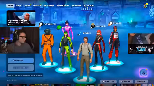 02:30:17Das Spiel beginnt mit der Veröffentlichung des Einladungscodes. Der Streamer landet in der Stadt 'New Sanctuary', die er für sich als Safezone deklariert. Marvs Team von 99 Spielern, alle im blauen 'Eiskönig'-Skin, startet an verschiedenen Orten der Karte. Der Streamer beginnt sofort mit der Jagd und erzielt seine ersten Eliminierungen. Währenddessen werden Probleme mit einem vermeintlichen Cheater namens 'Schlecker 67' bekannt, der bereits zu Beginn auffällig agiert und später aus der Lobby entfernt wird.