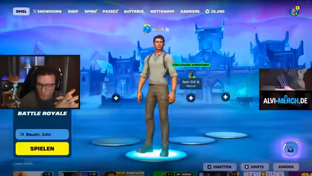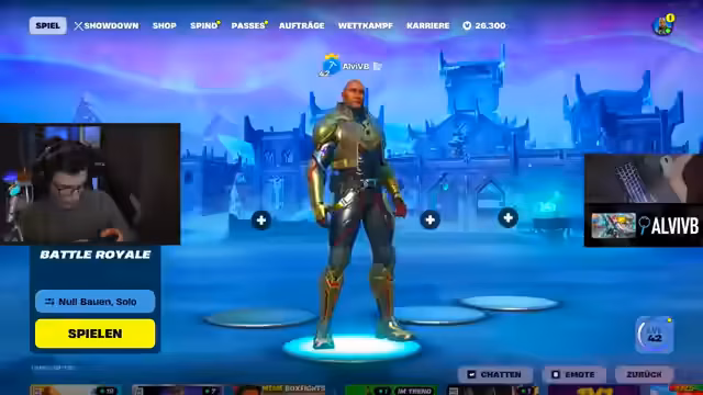 02:17:30Nach technischen Vorbereitungen und einer kurzen Pause plant der Streamer eine neue Aufnahme. Geplant ist ein besonderes Challenge-Format: Er wird als einziger Spieler mit dem Charakter 'The Rock' gegen 99 Gegner antreten, die von dem Streamer Marv angeführt werden. Für das Spiel wird der Zero-Build-Modus festgelegt. Ein wichtiges Regelwerk wird etabliert, um die Balance zu wahren. Marvs Team darf ausschließlich Heiltränke und Spitzhacken zur Schadensverursachung nutzen, während der Streamer alle Waffen und Items verwenden darf.