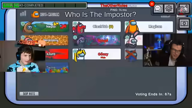 02:18:33Am Ende der Runde gibt es ein turbulentes Finale. Der Streamer ist sich absolut sicher, dass Twine der Impostor ist, und fordert die anderen Spieler eindringlich auf, diesen zu eliminieren. Trotz seiner Überzeugung und der von ihm platzierten Kameras als Beweis, bleibt die Situation unklar und wird durch vage Verdächtigungen und Verwirrung kompliziert. Es wird unklar, ob der Stream die richtige Entscheidung trifft, oder ob seine Annahmen von den anderen Spielern nicht geteilt werden, was die Spannung bis zum Ende aufrechterhält.