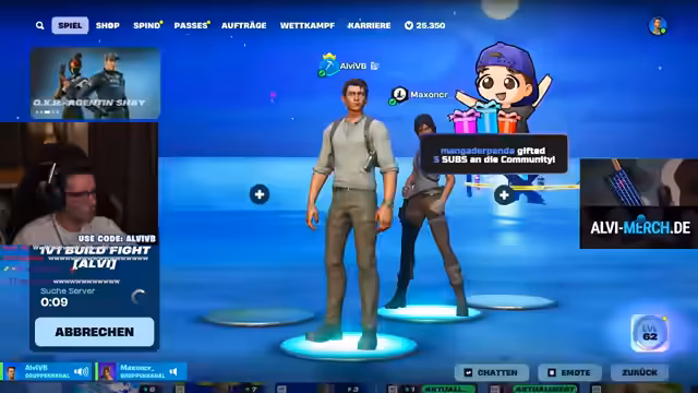 01:08:15Die Reload Ranked-Serie wird fortgesetzt. Aktuell befindet man sich auf Diamant 2,45%. Das Ziel ist es, den Elite-Rang zu erreichen, da ab diesem nur noch sehr gute Gegner wie Champions- und Unreal-Spieler in den Lobbys sind. Nach der ersten Runde auf der Slurp-Map steigt der Rang auf Diamant 3, 26%. Nach weiteren erfolgreichen Runden erreicht man 24% Elite. Während des Streams wird die Merchandise-Seite 'alvi-merch.de' beworben.