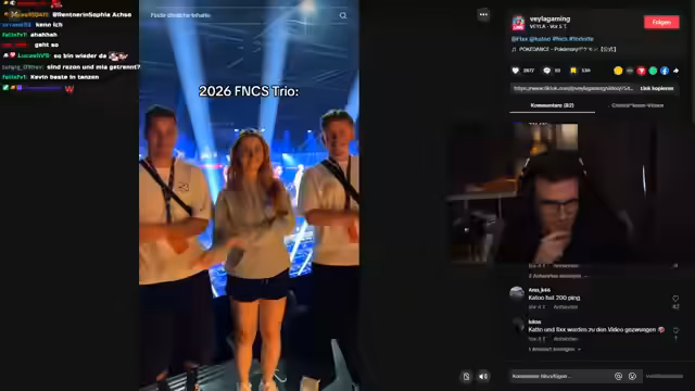 00:19:09Nach den technischen Problemen mit den Bots unternimmt Alvi den Wechsel zur Hauptaktivität des Streams: eine Reaktion auf ein Video von Johnsy. Darin geht es um einen Betrugsversuch auf der FNCS-Bühne. Alvi zeigt begeistert das Video und kommentiert, wie Johnsy es geschafft hat, sich nahe der Bühne aufzuhalten und dabei verschiedene Aktionen durchzuführen. Alvi drückte seine Bewunderung für die Kreativität und Dreistigkeit des Videos aus und verspricht, selbst ähnliche Aktionen zu versuchen.