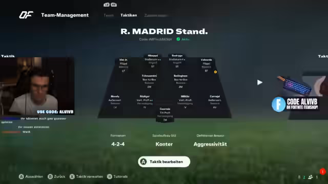 00:08:20Der Stream beginnt mit einem herzlichen Willkommen an den Chat, wobei der Streamer einen sehr langen Stream ankündigt, der um 20 Uhr in ein Live-Event mündet. Er betont die Wichtigkeit des Creator-Codes 'AlviVB' für die Unterstützung, besonders zu Beginn einer neuen Season. Der Streamer erklärt, wie der Code im Item-Shop eingegeben werden kann, unabhängig von der Groß- und Kleinschreibung. Dies sei ein wichtiger Support für ihn, besonders zu Saisonbeginn.