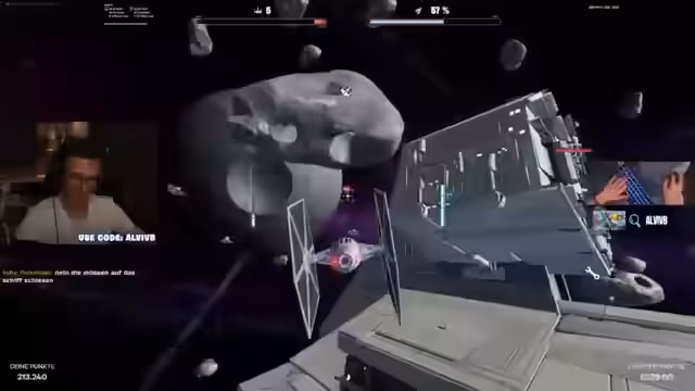 03:01:43Im Starfighter-Modus konzentriert sich der Streamer auf verschiedene Strategien, um Missionen erfolgreich zu absolvieren. Er diskutiert die Wichtigkeit von Überleben, Punkte sammeln und das Zerstören von Steinen, die möglicherweise wertvolle Items enthalten. Bei einem erfolgreichen Destroy-Mission wird die ganze Community eingeladen, den Sieg zu feiern, während er gleichzeitig auf die verbleibende Zeit und die Aufgaben fokussiert.