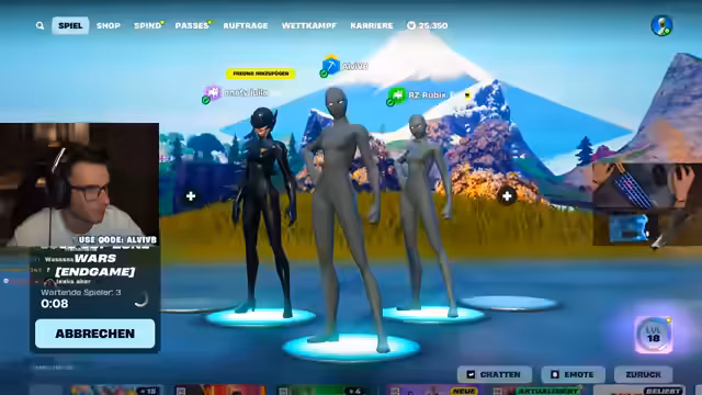 01:44:47Der Streamer interagiert stark mit seiner Community. Er bittet die Zuschauer, eine Lieblingszahl in den Chat zu schreiben, und diskutiert seine Vorliebe für die Zahl 10 aufgrund seiner Fußballerfahrung. Er veranstaltet eine Umfrage, ob die nächste Runde mit oder ohne UNITE gespielt werden soll. Nachdem sich die Community für ohne entschieden hat, kommuniziert er den Code '114455' für die letzte Lobby und appelliert an alle Spieler, seinen Creator-Code 'ALVVB' im Itemshop einzulösen.