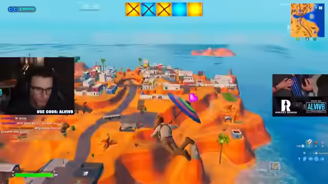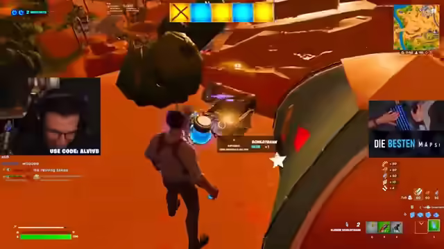 00:34:11Das Rainbow Mythic Exotic Battle gegen Dave Knight beginnt. Die Regeln werden nochmals erklärt: Der Streamer muss mit einem mythischen Item beginnen, dann ein exotisches finden und so weiter, während Dave mit einem exotischen Item beginnen muss. Es wird über die bisherigen Reload Battles gesprochen und wer öfter gewonnen hat. Der Streamer lobt Daves Intro. Es wird betont, wie wichtig es ist, den Killfeed im Auge zu behalten, um Informationen über die Waffen zu erhalten. Die Zuschauer werden gebeten, den Creator-Code im Itemshop zu benutzen, um den Streamer zu unterstützen. Der Streamer bittet um Glück im Chat für das bevorstehende Battle. Dave macht am Anfang gut Progress, kommt nach vorne, aber all die kommen über das Late Game.