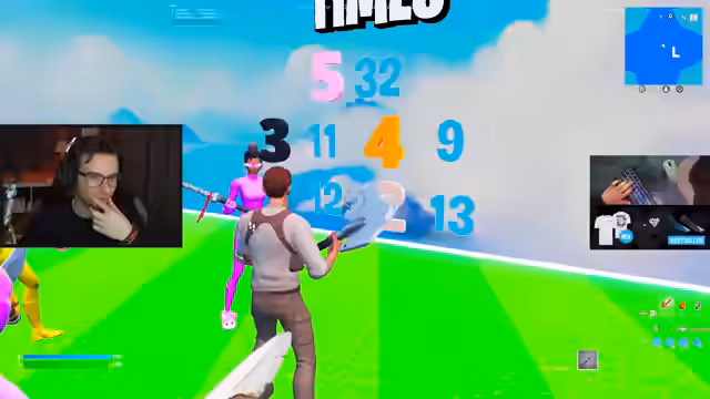 01:03:39Nachdem alle technischen Probleme gelöst sind, beginnt das eigentliche Spiel mit der ersten Disziplin: Editieren. Die fünf Teilnehmer müssen einen Parcours so schnell wie möglich durchlaufen, indem sie Wände und Strukturen editieren. Jeder Spieler durchläuft den Kurs einzeln, während die anderen und die Streamer beobachten. Die Zeiten werden gestoppt und verglichen. Der erste Teilnehmer in roter Farbe absolviert den Kurs in einer decenten Zeit, wirkt aber etwas planlos. Danach folgen die Teilnehmer in Gelb, Schwarz, Orange und Pink, wobei sich die Leistung der Spieler unterscheidet. Die Streamer analysieren die Editierfähigkeiten und stoßen auf einige Auffälligkeiten in der Spielweise.