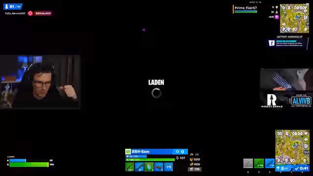 00:58:55Während des Spiels treten erhebliche technische Probleme auf. Viele Spieler-Skins werden nicht korrekt geladen und nur als Silhouetten dargestellt, was die Identifizierung erschwert. Auch die Map-Ansicht des Streamers zeigt einen Bug, bei dem die Karte doppelt angezeigt wird. Der Streamer bemerkt das Verhalten bestimmter Spieler kritisch und mahnt diese, fair zu spielen, was auf eine engagierte Community-Überwachung hindeutet. Gleichzeitig bedankt er sich für die Unterstützung und die große Anzahl der Zuschauer.