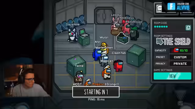 00:09:37Die anfänglichen technischen Probleme und Diskussionen über die zu treffenden Spielzüge sind abgeschlossen. Die Spielerliste für dieAmong Us-Runde wird vorgestellt. Mit dabei sind Clashtab, Lesley, Evi, Wutzi, Bouget, Twine, Magican, Marlene, Dave Knight und der Streamer. Die Gruppe startet in die erste Runde als normaler Crewmate mit verschiedenen Aufgaben.