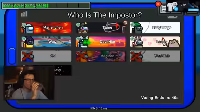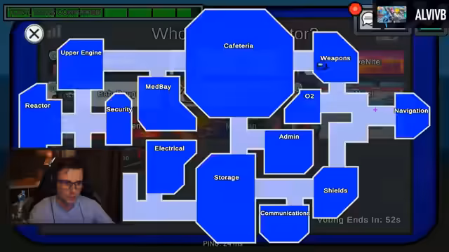 00:17:40Aufgrund des Musters des Imposters, bei dem bei O2-Aktivierungen Links-Kills und bei Reaktor-Aktivierungen Rechts-Kills stattfinden, wird der Fokus auf die rechte Seite des Raums gelenkt. Marlene steht im Verdacht, da sie sich als einzige auf der rechten Seite aufgehalten hat und in den Verdacht gerät, die Leiche getötet zu haben. Trotz der mangelnden hundertprozentigen Beweise wird Marlene im Voting ausgeschieden.