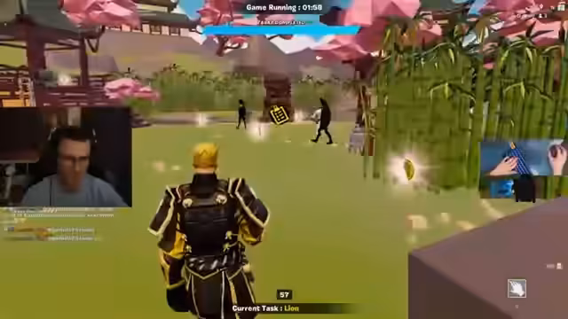 00:08:49Der Streamer erklärt den Spielmodus 'Zone Wars' mit Geist Omos. Auf der Karte sind Lamas verteilt, durch die man Loot erhält. Jeder Spieler hat zwischen 500 und 1000 Leben. Während der Runde finden verschiedene Events statt, wie etwa sich aktivierende Geschütztürme oder Blitze vom Himmel. Das Ziel ist es, so lange wie möglich zu überleben und am Ende als Sieger dazustehen.