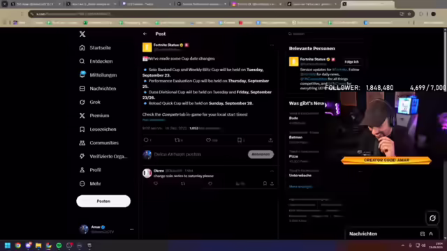 04:56:35Amar kündigt das Ende des Streams an, da er am nächsten Tag nach Hamburg reisen muss, um an der Hochzeit eines Freundes teilzunehmen. Er bedankt sich bei den Zuschauern und Mitspielern für den unterhaltsamen Stream und betont, wie viel Spaß ihm der Modus gemacht hat. Amar entschuldigt sich dafür, dass er am Sonntag und Montag nicht live sein kann, verspricht aber, Insta-Stories zu posten und YouTube-Videos hochzuladen. Er gibt einen Überblick über die geplanten Cups in der kommenden Woche, darunter Solo-Rank-Cup, Weekly-Blitz-Cup, Performance-Cup und Duo-Divisional-Cup. Amar äußert seine Verwirrung über den Zeitplan und fragt den Chat nach dem Namen eines bestimmten Spielers, den er gerne raiden würde. Zum Abschied raid Amar den Kanal von Mystique und wünscht seinen Zuschauern viel Spaß. Er verabschiedet sich und kündigt seine Rückkehr am Dienstag an. Der Chat drückt seine Begeisterung für den Stream aus und bedankt sich bei Amar für die Unterhaltung.