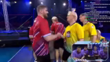 01:39:17Es wird der Wunsch geäußert, selbst am Jump'n'Run teilzunehmen. Janine Michael Eelsen und Imke schlagen ein Duell gegen Robby und vor. Die Form muss nach der Anstrengung wiedergefunden werden. Team No Way erreicht den dritten Platz. Inke Zalander äußert sich zu den Herausforderungen, insbesondere im Bällebad. Es wird festgestellt, dass das Stäbchenfangspiel nicht ganz regelkonform gespielt wurde, was zu Zeitstrafen von 30 Sekunden für zwei Teams führt. Team No Way landet mit 6 Minuten 59 Sekunden auf dem dritten Platz. Die finalen Endstände nach der Landstage werden präsentiert. Jedes Team hat zwei Coins gesammelt, die als Andenken dienen und gegen Sachen eingetauscht werden können. Eine Matte mit den Items wird vorbereitet, und die Zuschauer können sich überlegen, was sie kaufen würden. Janine hat noch etwas vorbereitet. Es wird gefragt, was man sich bei einem Topf Vaseline denkt. Nach den ersten Einblicken in die Fähigkeiten der Teams wird eine Community-Frage gestellt, wer der Lieblingsteamkapitän ist. Papaplatte ist sehr gut vertreten und wird von vielen als Favorit genannt. Das Team von Amar hat viel Zeit bei den Fangspielen verloren, und No Waste Team ist mit viel Elan gestartet. Alle Teams werden gelobt. Die vier CreatorInnen auf der Fläche werden für ihre Unterstützung gedankt. Die Landstage wird offiziell verabschiedet, und es wird ein ModeratorInnen-Duell in Aussicht gestellt. Die Airstage steht in den Startlöchern. Imke berichtet von guter Stimmung und Zuversicht. Es wird überlegt, wer als nächstes Rennen muss. Ein Handy wurde im Bällebad verloren. Janine möchte die nächste Stage sehen.