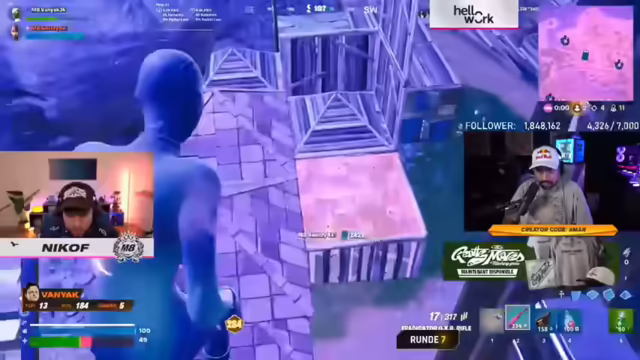 07:52:44Es wird eine humorvolle Bemerkung über den Zustand von Fortnite gemacht, gefolgt von einer Diskussion über alternative Beschäftigungen und Neustartmöglichkeiten im Leben. Persönliche Vorlieben für Sportarten werden ausgetauscht, wobei Fußball, Tennis und Kampfsportarten genannt werden. Es wird über die Körpergröße diskutiert und festgestellt, dass es geringe Unterschiede gibt. Es folgt eine humorvolle Interaktion über das richtige Editieren im Spiel. Abschließend wird die Frage aufgeworfen, ob ein Spieler Gameplay von anderen Leuten verwendet, was zu einer Diskussion über die Echtheit von Spielinhalten führt. Der Streamer drückt Ungläubigkeit darüber aus, dass ein Team, das gegen sie kämpft, von einem Dritten angegriffen wird und dieser Dritte dann einen der Gegner verschont. Dies wird als besonders unfair empfunden.