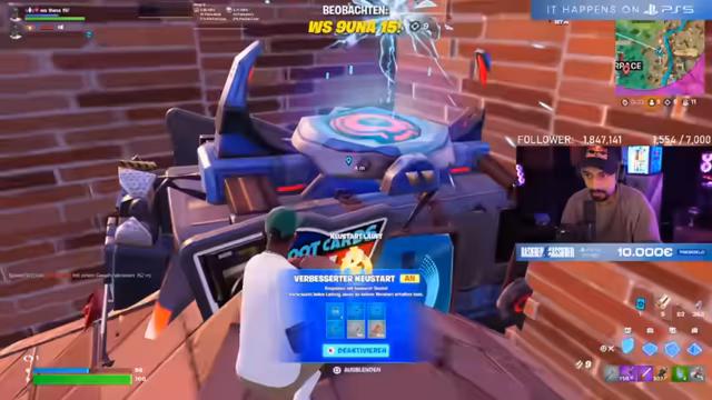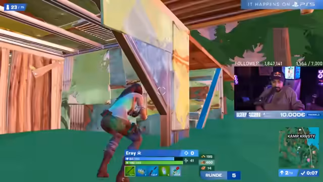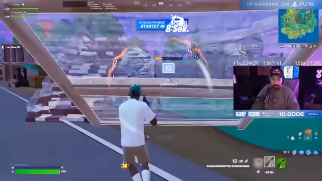 08:15:08Nach dem knappen Sieg von Patrick über Mati fordert der Streamer selbst Patrick zu einem 1v1 heraus, ebenfalls mit dem Ziel, zuerst fünf Punkte zu erreichen und um 10 Sub-Gifts zu spielen. Der Streamer kämpft jedoch mit technischen Problemen, insbesondere wiederholten 'Black Screens', die seine Leistung stark beeinträchtigen. Er verliert das Match gegen Patrick, was zu großer Überraschung und Belustigung im Chat führt, da der Streamer zuvor behauptet hatte, unschlagbar zu sein. Nach dieser Niederlage wechselt das Team in ein Trio-Gameplay, wo sie sich in intensiven Kämpfen beweisen müssen. Sie rotieren geschickt durch die Zone, sammeln Loot und versuchen, Gegner auszuschalten. Trotz weiterhin auftretender 'Black Screens' und der Schwierigkeit, genügend Baumaterialien zu finden, gelingt es dem Team, mehrere Gegner zu eliminieren und sich in den Top-Platzierungen zu halten. Die Kommunikation im Team ist entscheidend, um die Zone zu managen und die Gegner zu überlisten.