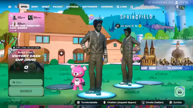 03:36:01Nach einem erfolgreichen Kampf, bei dem die Gegner als „Knechte“ bezeichnet werden, bereiten sich die Spieler auf den Dual Cash Cup vor. Es wird festgestellt, dass die Gegner viele Boxen gebaut haben, was nun im Nachhinein Sinn ergibt. Die Spieler sind froh, aus dem Kampf heraus zu sein und sich auf das nächste Turnier konzentrieren zu können. Die Vorbereitung beinhaltet die Auswahl des Skins und die Überprüfung, ob alle Voraussetzungen für das Turnier erfüllt sind. Es wird eine positive Einstellung zum ersten Cup der Saison gezeigt und die Erwartung geäußert, erfolgreich zu sein. Die Spieler bedanken sich beim Chat für die Unterstützung und kündigen den Start des Turniers in Kürze an.