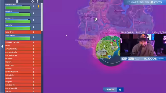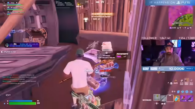 07:43:50Der Streamer kommentiert intensiv ein Fortnite-Match, in dem ein Spieler 'völlig dumm' stirbt und das Team anschließend gegen ein Duo-Jet antritt. Er kritisiert die Entscheidungen der Spieler, insbesondere das Verlieren einer scheinbar gewonnenen Situation mit mehreren Splashern, was er als Zeichen schlechten Spiels wertet. Die Gegner werden als 'Peterbots' bezeichnet, während die Leistungen anderer Spieler wie 'Mr. Savage' (21 Jahre alt) gelobt werden, der als mechanisch begabtester und hübschester Spieler seiner Altersklasse beschrieben wird. Die Diskussion über die Fähigkeiten der Spieler und die Dynamik des Matches nimmt einen zentralen Platz ein, wobei auch humorvolle Übertreibungen über die Eigenschaften von Mr. Savage gemacht werden, wie 'der Reichste' und 'der Athletischste'. Es wird auch ein Giveaway für sechs PS5-Konsolen angekündigt, drei online und drei vor Ort bei einem LAN-Event in Berlin am 29. des Monats, für das man sich durch Instagram-Follow qualifizieren kann. Der Eintritt zum Zuschauen ist kostenlos, es wird empfohlen, frühzeitig zu erscheinen. Die Diskussion dreht sich auch um die Ping-Zeiten und die Probleme mit der Serververbindung, die die Spielerleistung beeinträchtigen.