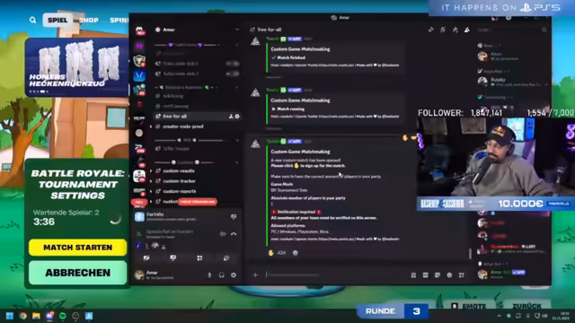 00:09:19Um an den Qualifikationsrunden teilzunehmen, müssen Interessierte dem Discord-Server beitreten, sich dort verifizieren und den Reiter 'Rasieren und Kassieren' nutzen, um sich über Unite mit ihrem Account zu verbinden. Dies ist notwendig, um den Code für den Solo-Tournament-Modus im Battle Royale zu erhalten. Nach erfolgreicher Verifizierung erscheint ein 'Free for All'-Channel, in dem eine Hand aufblinkt, auf die man klicken muss, um am Turnier teilzunehmen. Zusätzlich läuft ein Gewinnspiel in Zusammenarbeit mit PlayStation, bei dem insgesamt sechs PS5-Konsolen verlost werden. Drei davon online über Gleam und drei weitere vor Ort in Berlin am 29. November. Die Teilnahme erfordert das Zustimmen zu den Bedingungen und das Folgen auf Twitch, YouTube und dem Zweitkanal, um die Gewinnchancen zu erhöhen.