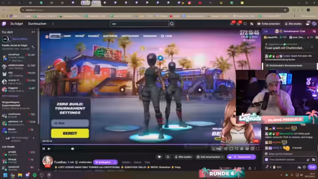 00:13:41Amar kündigt das neue Fortnite Chapter 7 an und das Lost Legends Turnier mit 20.000€ Preisgeld. Er ist von Epic Games ausgewählt worden und freut sich auf die vielen teilnehmenden Creator. Die erste Runde startet in etwa 15 Minuten mit Regelerklärungen und Teamvorstellungen. Besonders spannend ist das geplante Haare-Leak, auf das die Community gespannt wartet.