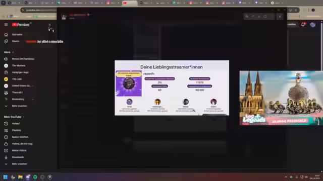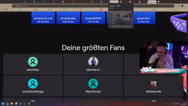 05:49:04Das Jahr brachte 200.000 neue Follower, 14.000 Abonnements und 3,8 Millionen geschauten Stunden. Die meistgesehenen Kategorien waren Fortnite, Valorant und Just Chatting. Ein Highlight war ein Clip mit 52.000 Zuschauern. Der Streamer zeigt außerdem eigene Recap-Daten: 5.215 Stunden Watchtime, Top-Kategorien und die meistgenutzten Emotes, darunter 'Vadial Prey'.