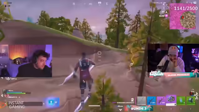 02:41:23Die SPECIAL ROUND wird als Duo No-Build-Modus angekündigt. Es gelten strenge Regeln: Nur Sniper-Waffen, Pickaxe, Heilitems, Mobility-Items und Shield Bubbles sind erlaubt. Bunker sind explizit verboten. Der Gewinner der Runde erhält 2000€ Preisgeld von Amar. Alle Teilnehmer werden instruiert, ihre Einstellungen zu prüfen und Anonymmodus zu deaktivieren, um Transparenz zu gewährleisten. Hinweise zum verbotenen Autofahren mit Reboot-Bussen werden gegeben.
