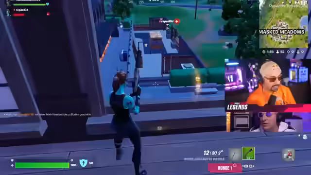 01:12:34Das Turnier beginnt mit der ersten Runde Fortnite mit sieben Teilnehmern. Der Streamer betont, dass es sich um ein Zero-Built-Turnier handelt. Das Turnier besteht aus sechs regulären Runden für die Gesamtwertung und einer Special Round, die allein 2.000 Euro Preisgeld bringt. Nach den ersten Eliminierungen startet das System die Placements. Teilnehmer wie Mia und Kati zeigen bereits in der ersten Runde starkes Gameplay und sammeln Kills.