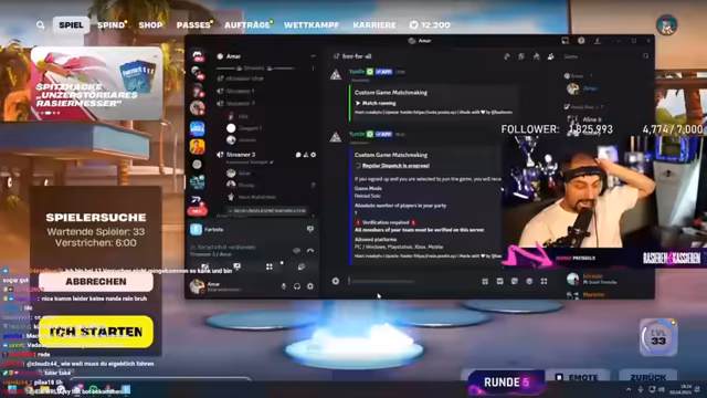 00:25:18Es wird darauf hingewiesen, dass die Zuschauer ihre Twitch-DMs aktivieren sollen, damit der Streamer ihnen schreiben kann. Der Streamer erklärt, wie man die Flüsternachrichten in den Privatsphäre-Einstellungen aktiviert. Zwei Skins wurden gekauft und der Streamer freut sich darauf. Es wird angemerkt, dass Wave Österreich ihm nicht folgt, obwohl er ihnen viel gegeben hat. Ein Video muss noch auf TikTok hochgeladen werden. Der Chat wird komplett aufgemacht und die erste Runde beginnt. Es wird spekuliert, wann die doppelte Runde gemacht wird und ob es angekündigt wird oder erst in der Runde selbst. Die Supporter werden erwähnt und es wird gesagt, dass der Streamer heute bestechlich ist. Es wird erklärt, dass alles über den Bot ausgelöst wird und es einen Fill gibt, wenn Leute nicht joinen. Der Creator-Code-Proof wird gezeigt und es wird gefragt, welchen Creator-Code die Zuschauer drin haben. Es wird erwähnt, dass es 70.000 Supporter-Creatoren gibt, was aber nur ein Spaß war.