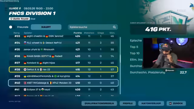 02:13:01Der Streamer berichtet über den aktuellen Stand im FNCS Division 1 Turnier. Er erwähnt die Notwendigkeit von Cap Mats für die Spiele und kritisiert die von Epic Games geänderten Regeln, die nun 12 Spiele pro Tag statt weniger vorsehen. Er spricht über die Müdigkeit der Spieler und den Druck, der durch die langen Sessions entsteht. Trotzdem feiert er den Sieg von VeloBot in einem Solo-Spiel und dessen beeindruckende Performance.