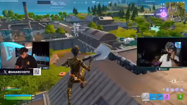07:12:59Der Streamer spielt Fortnite und arbeitet mit einem Profi-Spieler namens Kylie zusammen. Er beschreibt den Gameflow, der überleben und Kills sammeln soll. Sein Partner wird geköpft, was die Runde beendet. Nach der Runde diskutieren sie über den nächsten Schritt, wie das Zuschauen von Reload-Spielen von anderen Pros. Der Streamer äußert die Meinung, dass viele Spieler komische Taktiken anwenden.
