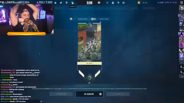 03:48:15Während die Teammitglieder in der Lobby sind, treten technische und organisatorische Hürden auf. Eines der Mitglieder hat Probleme, dem Team beizutreten, weil es in der Wählerunde gefangen ist und den Account nicht verlassen kann. Der Streamer versucht, dies zu lösen und fordert die Spieler auf, schnell zu reagieren. Gleichzeitig wird über die Turnierregeln gesprochen, insbesondere darüber, dass bestimmte neue Agenten nicht erlaubt sind, und die Taktik für die ersten Runden wird besprochen.