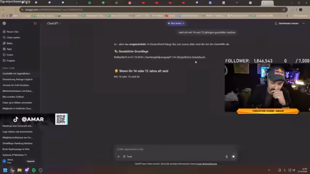 06:59:55Der Streamer wechselt das Thema und spricht über seine Karriere und sein Einkommen. Er vermutet, dass ein anderer Streamer namens 'Savage' wesentlich mehr verdient als er selbst, u.a. durch einen erfolgreichen Creator-Code. Er erzählt von seinen anfänglichen Investitionen in Streaming-Ausrüstung und wie er sich ein Einkommen aufgebaut hat. Zudem erwähnt er seine Verbindung zu anderen Streamern wie 'Vico' und 'Boop' und denkt über die Zusammenarbeit bei Inhalten und Turnieren nach, was zeigt, dass er strategisch über seine Content-Karriere nachdenkt.
