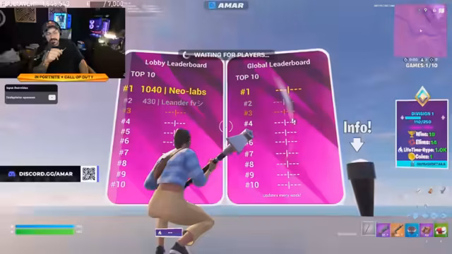 03:33:21Amar und die Entwickler präsentieren im Detail die neue Fortnite-Zone Wars-Map. Die Map bietet 20 verschiedene Spawnpunkte, verschiedene Biome wie Wüste und Wald und ein eigenes Arenasystem, das vom Prinzip des originalen Spiels abgeleitet ist. Spieler können durch Farmen von High Points in Divisionen von 1 bis 10 aufsteigen, wobei die benötigten Punkte noch angepasst werden müssen. Es ist geplant, wöchentlich ein Global Leaderboard einzuführen, bei dem die Top-Spieler Belohnungen wie Amazon-Gutscheine erhalten. Die Stats werden manuell über einen Discord-Server eingesendet und nicht automatisch erfasst.