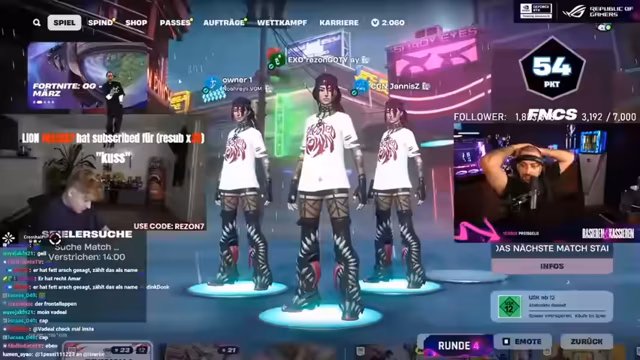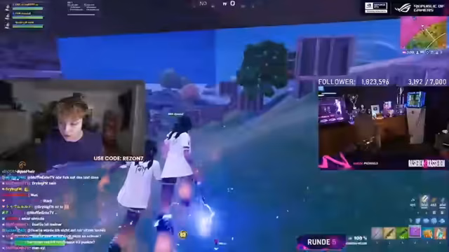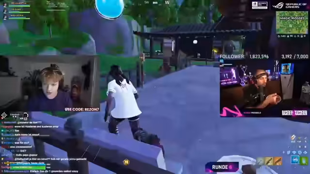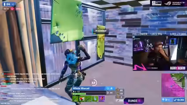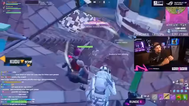 01:40:31Streamer interviewt den 15-jährigen Newcomer Kadar aus Rheinland-Pfalz. Dieser hat 400 PA und 25 Siege im Solo Cash Cup. Er ist auf Keyboard und freut sich auf die LAN. Streamer lobt sein Talent und seine Freundlichkeit und bittet ihn, sich bei Ruski für das LAN zu melden. Kadar ist ursprünglich aus der Türkei.