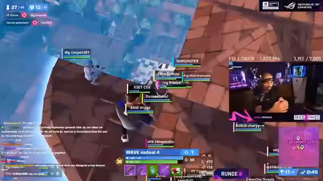 07:51:38Der Stream zeigt intensives Gameplay mit Diskussionen über In-Game-Ereignisse. Es gibt Kommentare zu Memes und zur Performance von Spielern wie Drexler. Der Streamer beschreibt, wie er im Ranking von Platz 1 auf Platz 3 gefallen ist, was Frustration verursacht. Gleichzeitig wird die hohe Qualität der Streams von anderen Kanälen wie Klix und Peterbot gelobt, bei denen es jedoch auch Verzögerungen gibt. Die Zuschauer interagieren aktiv mit dem Streamer, während er das Spielgeschehen kommentiert.