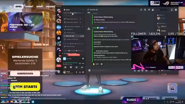00:18:39Es geht um den 10.000 Euro Qualifier, der in Zusammenarbeit mit Nvidia, Asus und Epic Games stattfindet. Das gesamte Event kostet über 100.000 Euro, mit 40 LAN-Setups mit High-End-PCs und Equipment. Die Qualifier finden heute, morgen, am 27., 30. und 31. statt, mit sechs Qualifiern pro Tag. Pro Runde qualifiziert sich der Spieler mit den meisten Kills. Es gibt keine Begleittickets. Asus kauft 40 Tickets von der Kaktusmesse, obwohl sie Hauptsponsor sind. Die Teilnahme ist über den Discord-Server möglich, wo man sich verifizieren und den UniteBot einladen muss. Der Modus ist Reload mit 40 Leuten, bei dem es nur um die meisten Kills geht. Es werden sechs Runden gespielt und es gibt die Möglichkeit, dass der Streamer die Anfahrt für 10.000 Creator-Code-User zahlt. Er ist transparent bezüglich seiner Einnahmen und gibt einen Teil davon an die Community zurück.