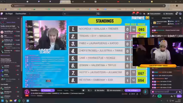 03:20:55Das Stream-Team konzentriert sich intensiv auf das Spielfortnite, mit einem klaren Fokus auf strategische Bewegungen und Entscheidungen. Es werden Bunker als Schutzmechanismen genutzt und die Spieler diskutieren über optimale Landeorte und Looting-Strategien. Der Kommunikation im Team wird große Bedeutung beigemischt, um im Spiel erfolgreich zu sein und Gegner zu eliminieren.