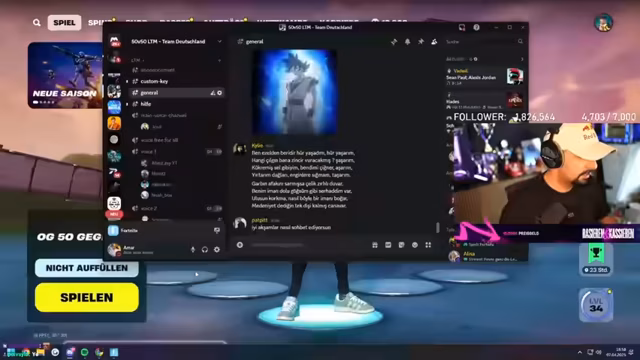 00:00:00Der Stream beginnt mit der Ankündigung eines großen Fortnite-Events: Deutschland gegen Frankreich in einem 50-gegen-50-Battle. Es wird ein LTM-Modus gespielt, in dem Teams sich reviven können, sobald alle fünf Spieler einer Squad ausgeschaltet sind. Hauptgewinn sind Adidas-Kollaborations-Items. Streamer Amar koordiniert das deutsche Team mit einer Mischung aus Pro-Spielern wie Vadial, Noms, Flixi, Kickduo und Kylie sowie vielen deutschen Content-Creators. Die Organisation ist chaotisch, da die Lobby-Hosts einen Custom Key austauschen müssen, der nicht geleakt werden darf.