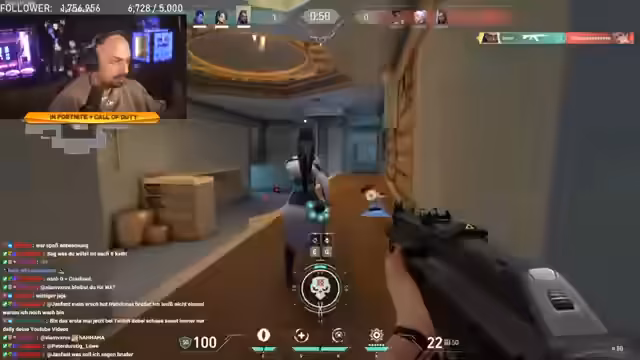 03:46:17Während des Spiels werden die taktischen Aspekte der Map Lotus besprochen. Maus wird instruiert, sich ohne Sprinten bewegen zu nutzen, um nicht gehört zu werden, und darauf zu achten, das Crosshair auf Kopfhöhe zu halten. Der Streamer markiert Gegner auf der Minimap und gibt gezielte Anweisungen, um Maus an Positionen zu führen, wo dieser die Gegner aus verschiedenen Richtungen kontrollieren kann.