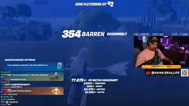 04:14:10Der Streamer widmet sich wieder dem normalen Fortnite-Battle-Royale, kommentiert aber weniger sein eigenes Spielgeschehen als vielmere die Aktionen im Chat und im Spiel. Er äußert seine Frustration über die hohe Wettbewerbsfähigkeit des Spiels, das er als 'verschwitzt' bezeichnet. Gleichzeitig interagiert er mit dem Chat über persönliche Themen, wie seinen Rang in der Liga, und startet eine Art 'Therapiestunde', in der er seine Zuschauer auffordert, ihren 'Leidensweg' im Spiel zu akzeptieren, um besser zu werden.