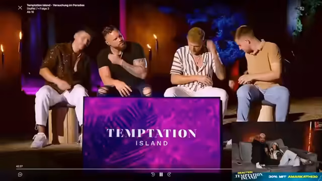 03:31:28Der Stream wandelt sich vom Gaming zur Reality-Show 'Temptation Island'. Nach technischen Herausforderungen, die die Verzögerung verursachen, wird die Studio- und Technik-Vorbereitung für die Show-Reaktion gezeigt. Dazu gehören das Einrichten der Kameras, die Suche nach der Fernbedienung und die Sicherstellung des gemeinsamen Chats. Der Moderator stellt den Snacktisch vor und bewirbt einen Rabattcode für RTL Plus.