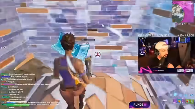 00:01:09Der Stream beginnt mit dem Solo Cash Cup Finals. Der Streamer coacht seinen Sohn Vadial in einer 200-Euro-Wette gegen Reason. Es geht darum, wer besser platziert wird. Der Streamer erwähnt, dass sie in den Opens nur einen Punkt weniger als Reason hatten, betont aber, dass Finals anders sind. Er gibt den Creator-Code AMA und Vadial für Support an. Gleichzeitig beobachtet er den Gegner Reason.