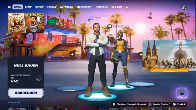 00:03:24Courage JD veranstaltet ein 100.000-Dollar-Turnier, das Amar gemeinsam mit Viko spielt. Es wird auf NA-Ping gespielt, was Herausforderungen mit sich bringt. Die Turniermodi umfassen Zero Build, Delulu-Modus (mit zwei separaten Lobbys und 10.000$ Extra-Preisgeld) sowie Hide & Seek. Besonders hervorgehoben wird, dass dies kein normales Turnier ist, sondern mit verrückten Modi wie Hide & Seek und Delulu gearbeitet wird, wobei letzteres 10.000$ für die Gewinnerlobby bietet. Amar erwähnt, dass er und Viko aufgrund des NA-Pings Nachteile haben, aber trotzdem optimistisch in das Event starten.