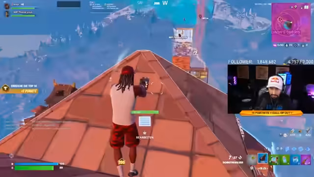 02:46:48Das Team befindet sich unter den Top 25 und bespricht die weitere Strategie, wobei der Fokus auf dem Ausspielen der Runde liegt. Es wird überlegt, wie lange die Runde noch dauert und wie man sich am besten positioniert. Die Spieler entdecken eine B-Chest in der Nähe und planen, diese zu zerstören, um an wertvolle Gegenstände zu gelangen. Sie sichten Gegner in einem Busch und überlegen, wie sie diese am besten angreifen können, entscheiden sich aber dagegen, direkt anzugreifen, sondern eine andere Position einzunehmen. Ein Spieler wird aus der Distanz beschossen und das Team versucht, ihn zu unterstützen. Es wird überlegt, ob man einen Crashpad nutzen soll, um sich neu zu positionieren und den Gegner auszuschalten. Die Spieler einigen sich darauf, sich in Richtung eines Hauses zu bewegen und von dort aus weiterzuspielen. Sie werden erneut von Gegnern beschossen und versuchen, sich zu verteidigen. Ein Spieler wird getroffen und das Team konzentriert sich darauf, ihn zu heilen. Die Spieler koordinieren ihre Bewegungen und versuchen, die Gegner zu lokalisieren. Ein Gegner wird entdeckt und das Team plant, ihn anzugreifen. Es wird überlegt, wie man die Gegner am besten flankieren kann, um sie zu überraschen. Die Spieler einigen sich darauf, sich neu zu positionieren und die Gegner von verschiedenen Seiten anzugreifen. Sie nutzen die Deckung des Geländes, um sich unbemerkt zu nähern. Die Spieler tauschen Informationen über die Position der Gegner aus und planen ihren Angriff. Sie versuchen, die Gegner zu isolieren und einzeln auszuschalten. Nach erfolgreichem Kampf wird die Beute aufgeteilt und das Team bereitet sich auf die nächste Phase des Spiels vor. Es wird über die Notwendigkeit von Ressourcen wie Munition und Baumaterialien gesprochen. Die Spieler einigen sich darauf, sich in Richtung der nächsten Zone zu bewegen und dabei auf mögliche Gegner zu achten. Sie nutzen Crashpads, um schnell Distanzen zu überwinden und sich einen Vorteil zu verschaffen. Die Spieler werden erneut von Gegnern beschossen und versuchen, sich zu verteidigen. Ein Spieler wird getroffen und das Team konzentriert sich darauf, ihn zu heilen. Die Spieler koordinieren ihre Bewegungen und versuchen, die Gegner zu lokalisieren.