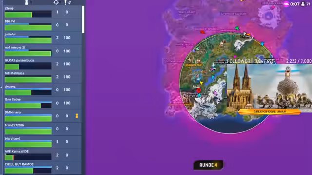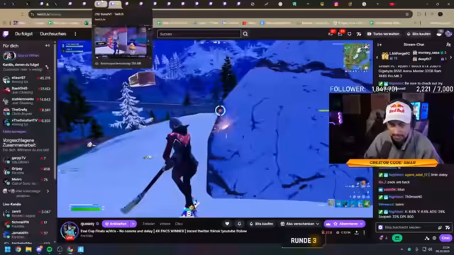 00:00:00Der Stream beginnt mit einer technischen Verzögerung. Amars Facecam ist in der Mitte des Bildes, was er zunächst bemerkt. Die erste Runde im Boss Performance Cup endet bereits nach kurzer Zeit, was im Chat für Verwirrung sorgt. Amar stellt fest, dass es kein klassisches Turnier mehr ist, da zu schnell gespielt wird. Anschließend diskutiert er über das aktuelle Fortnite-Update, das Crashpads und Exotics wieder eingeführt hat, während TPs und Nudeln entfernt wurden. Er äußert sich verwundert über die häufigen Änderungen durch Epic Games und wie diese das Spiel beeinflussen.