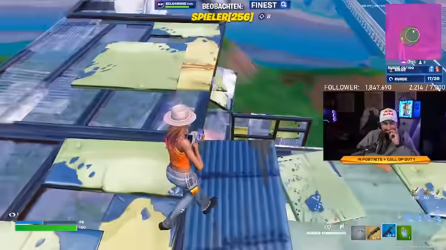 01:50:41Die angekündigte 1v1-Challenge zwischen Aruja und Gadar beginnt nach technischen Vorbereitungen und Verzögerungen. Der Streamer agiert als Kommentator und Schiedsrichter des Duells. Während des Spiels wird deutlich, dass Aruya sehr defensiv und auf Verteidigung durch Bauten setzt, während Gadar aggressiv spielt und als Favorit gilt. Der Streamer kommentiert den Kampf sarkastisch und bezeichnet Arujas Spielweise als sehr zurückhaltend und defensiv. Es kommt zu einem Schlagabtausch, der sowohl im Spiel als auch im Chat auf großes Interesse stößt.