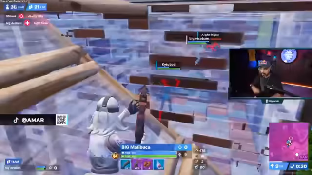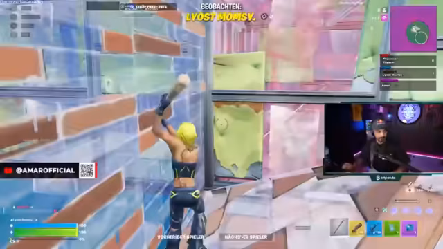 01:29:04Der Streamer spielt AMA mit einem Zuschauer namens Red Bullfrench, der angeblich nur am Handgelenk eine dicke Uhr wie Benten trägt. Es entsteht eine Diskussion über Zero-Build, wobei der Streamer feststellt, dass es auf Konzerten nervig sei, aber im PC-Spiel funktioniere. Anschließend wird die Vorstellung einer neuen Partnerschaft oder Kooperation angedeutet, die mit "ancon" zu tun hat, und es gibt eine Ankündigung eines anstehenden Turniers.