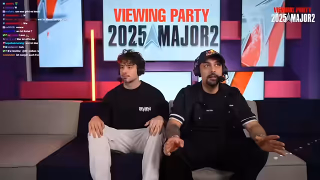 00:07:13Der Stream wird mit Musik und einer herzlichen Begrüßung der Zuschauer gestartet. Der Streamer stellt den professionellen Aufbau der Location mit einem riesigen Fernseher, Boxen, Kamera und einer Chat-Anzeige vor. Er erwähnt die Namen der hinter der Kamera arbeitenden Personen, Leon und Aimezy, und kündigt an, dass das Team in circa 20 Minuten Teil des offiziellen Fortnite-Broadcasts sein wird.