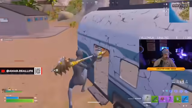00:39:35In den späteren Runden wird das Gameplay intensiver. Der Streamer und sein Partner müssen mehrere Kämpfe austragen, um sich gegen andere Teams durchzusetzen. Sie nutzen Items wie Jetpacks und Schildfische strategisch, um sich aus schwierigen Lagen zu retten oder den Gegnern zuzusetzen. Die Kämpfe sind oft knapp und erfordern schnelle Entscheidungen sowie effektives Bauen und Zielen.