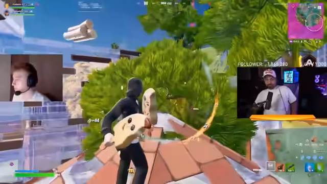 01:42:51Ein intensives Duell spielt sich in der Luft ab, bei dem ein Spieler zwei Gegner gleichzeitig angreifen muss. Der Streamer kommentiert die Dynamik der Schlacht und schlägt humorvoll vor, dass der entstandene Clip Potential für den besten TikTok des Jahres hätte. Dabei wird auch eine musikalische Reminiszenz an den 'OG Astronomia Rasenmäher' angestoßen und die Historie dieses Internet-Memes besprochen. Ein weiterer Spieler wird als Legende bezeichnet und sein präzises Aiming gelobt.